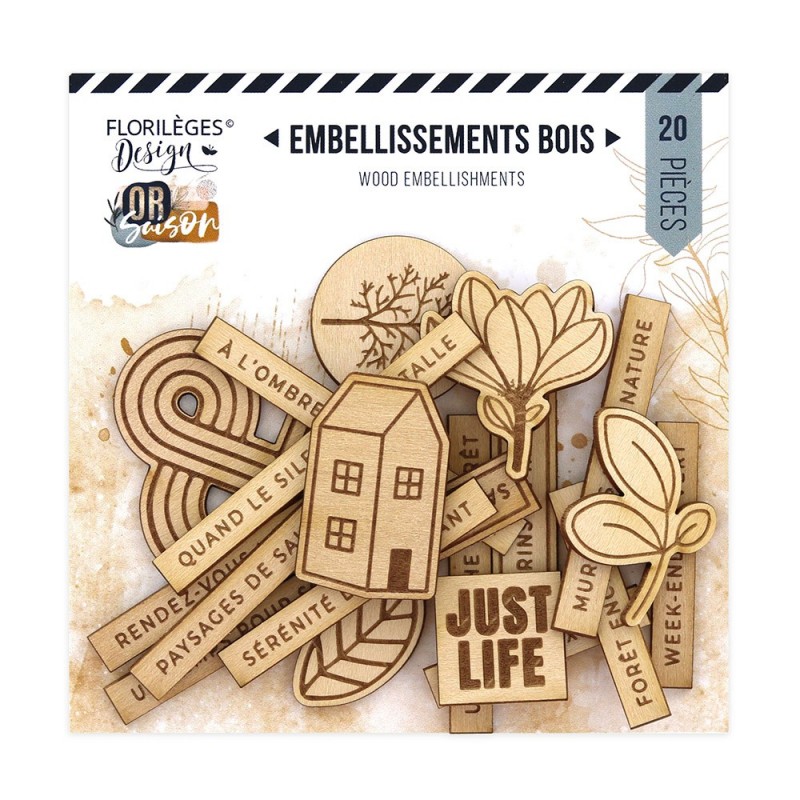 Ensemble de formes découpées et gravées en bois assorties à la collection OR SAISON.