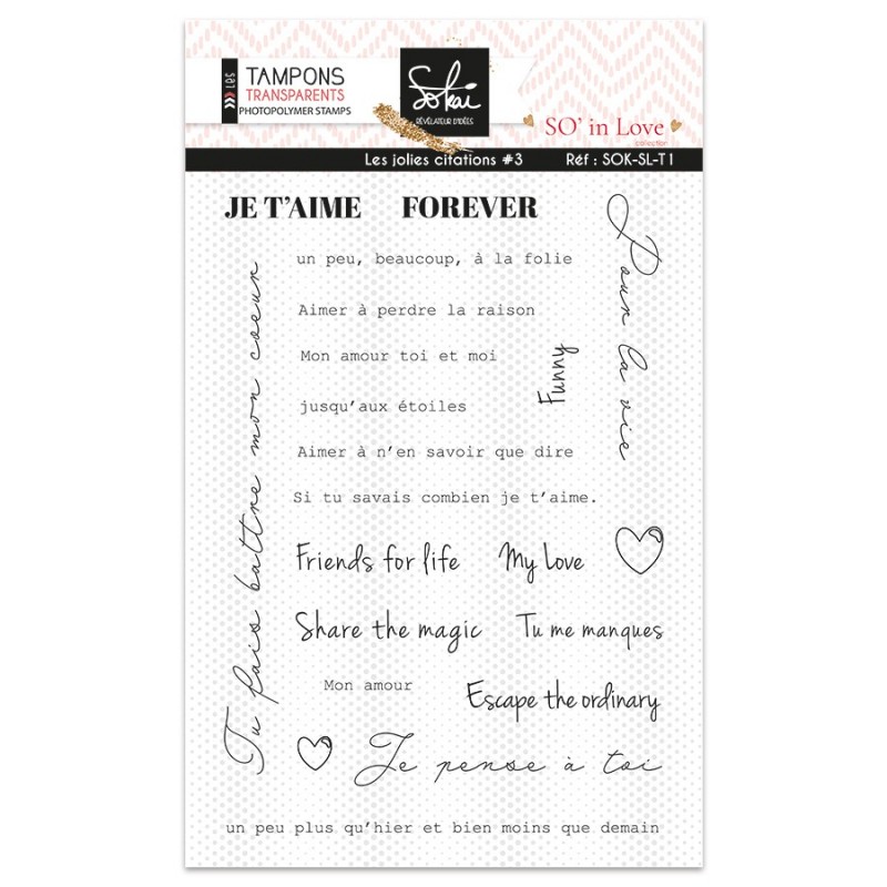 Cette planche comprend 21 tampons transaparents . ex : un peu, beaucoup, à la folie. Aimer à perdre la raison.....