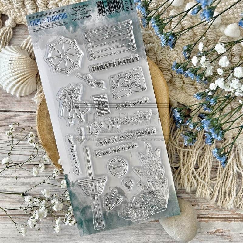 Planche 10x21 cm composée de 18 tampons transparents.