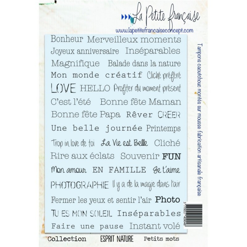 Ce set comprend 1 tampon comportant différents mots en français monté sur mousse
