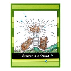 Le jeu de tampons en caoutchouc Sweet Birthday Cling fait partie de la gamme Summer Fun de House-Mouse Designs. Maxwell et Amanda soutiennent le tuyau pour envoyer Mudpie voler dans le spray