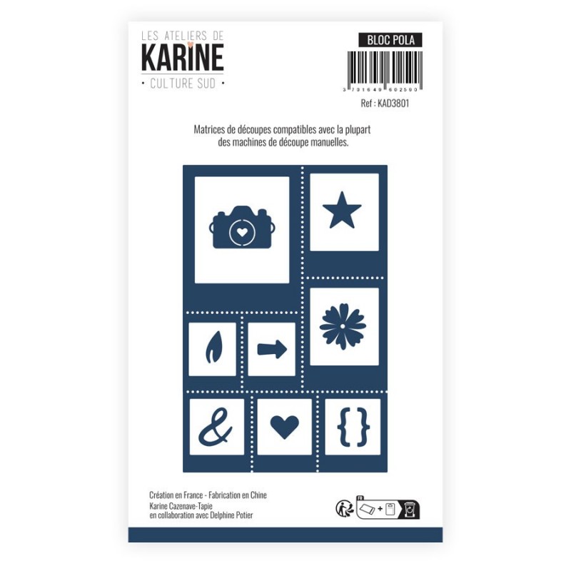 Dies Bloc Pola est une matrice de découpe pensée pour sublimer vos créations estivales. Conçue pour fonctionner avec la plupart des machines de découpe manuelles, elle permet de réaliser des découpes fines et détaillées, dans l’esprit doux et ensoleillé de la collection Culture du Sud. Idéal pour vos pages de scrapbooking, albums, carterie ou projets créatifs inspirés par la nature, les vacances et les ambiances méditerranéennes.