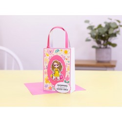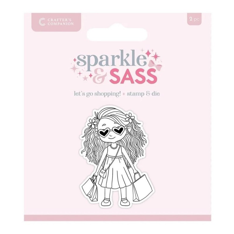 Faites du shopping créatif avec ce set Il comprend un tampon transparent et un die métallique représentant une fille portant des sacs.