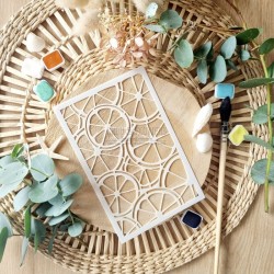 Pochoir format A6 avec comme motif des citrons, parfait pour ajouter une touche fruitée et ensoleillée à vos fonds de pages ou cartes estivales.