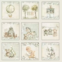 Pack de papiers imprimés Cutie par Reprint, format 15 x 15 cm, aux tons doux et motifs tendres pour vos créations scrapbooking et carterie.