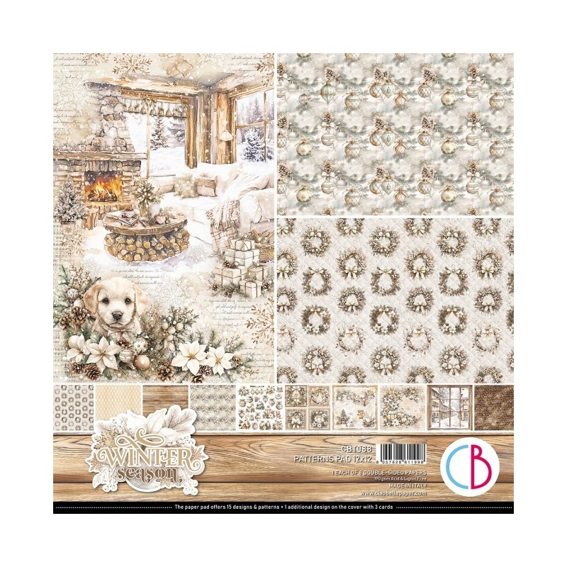 Kit de papiers 30,5 x 30,5 cm Winter Season de Ciao Bella. Une collection hivernale raffinée pour vos projets de scrapbooking, carterie et albums souvenirs.