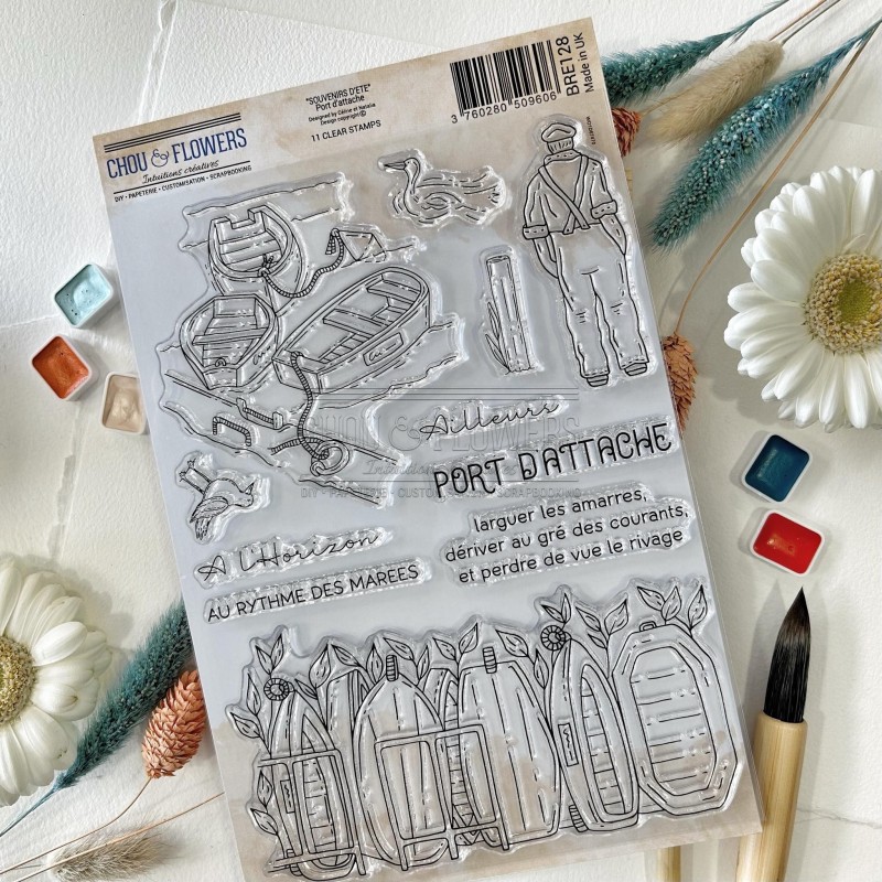 Illustrations bord de mer, cabanes, bateaux, bouées, cordages et petits détails marins